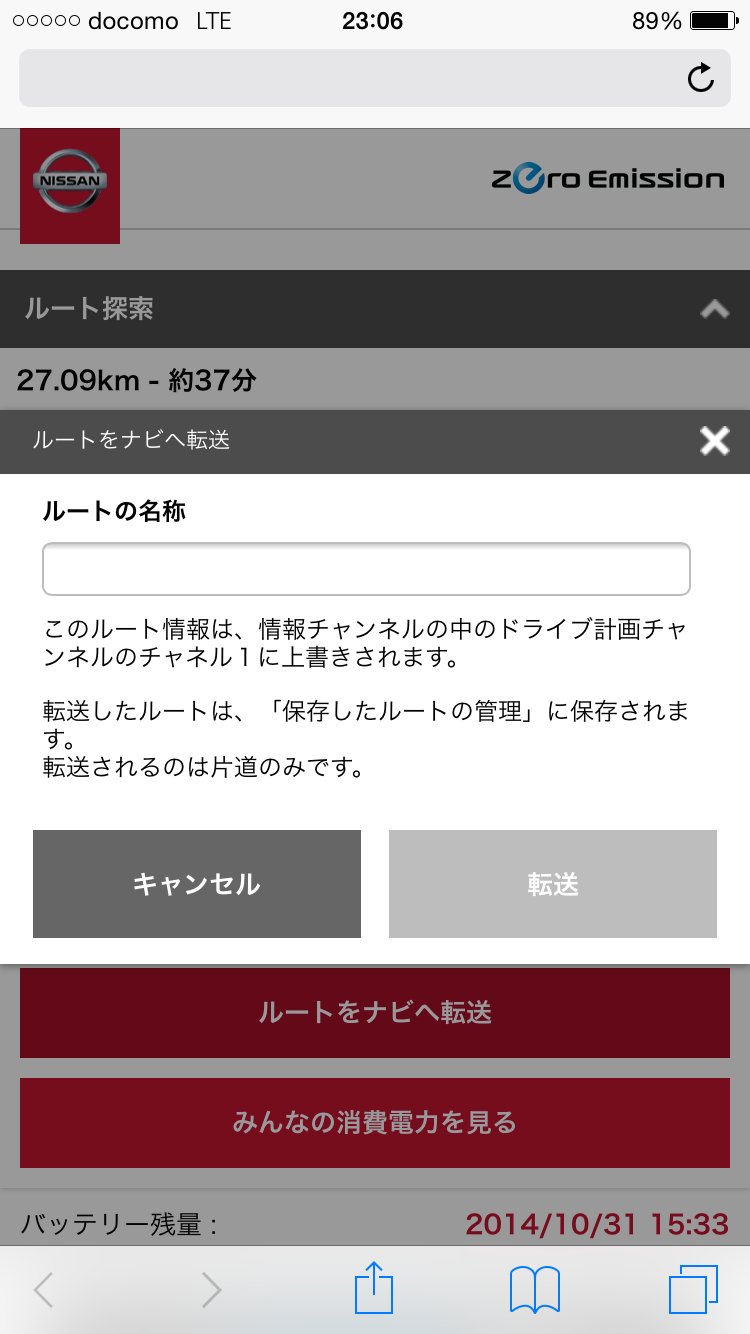 ・みんなの消費電力(過去に類似のルートを走行した「日産EV」の消費電力実績を確認できます)