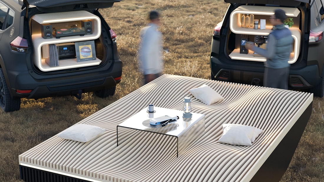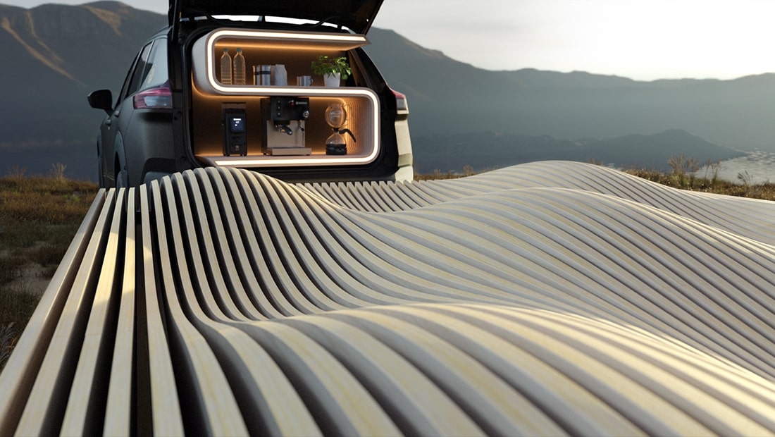 自分の「好き」を詰め込んだ新旧2台のエクストレイルで“Chill”を感じる世界感を演出します。「X-TRAIL unwind concept」では、e-POWERを搭載した現行「エクストレイル」をベースに、テラスを載せたトレーラーとともにカスタマイズし、インドア/アウトドアの境界を越え、本格エスプレッソを嗜むことを想定した贅沢なひと時を創り出す空間を演出しています。(参考出品)