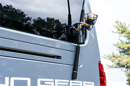 1500Wポータブル電源で冷凍庫、レンジ、電気毛布が使え、軽食や車中泊まで万全。夜間のタックル準備に便利な天井+バッグドアのLEDダウンライトや大切なタックルの塩抜きタンクまで、釣り好きスタッフが実際に企画・開発。リアサイド横にはアソビ心で「ランガン」仕様に便利な外付けロッドホルダーも付属。※釣竿はプレゼント対象には含まれません