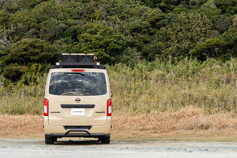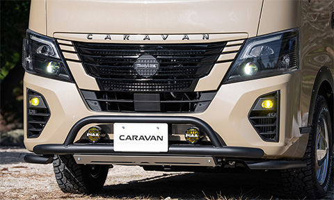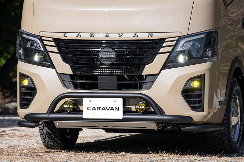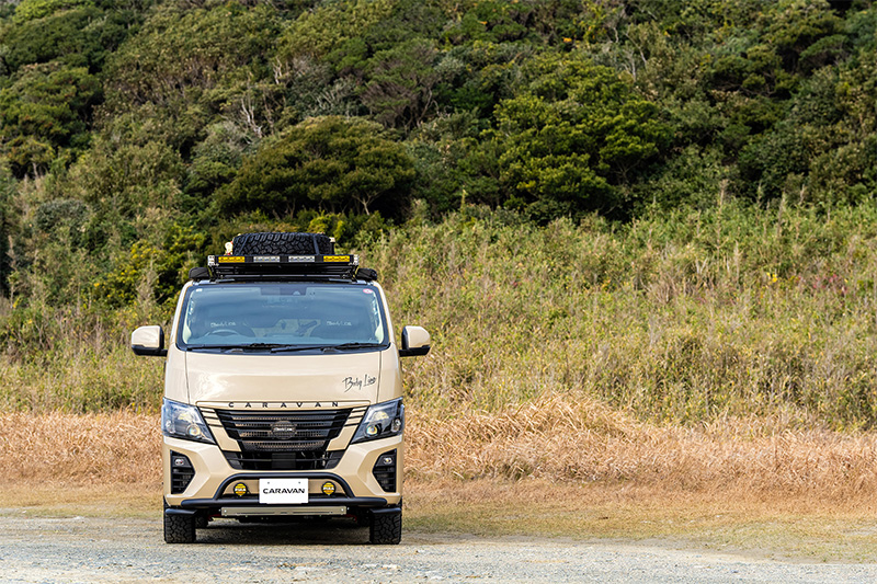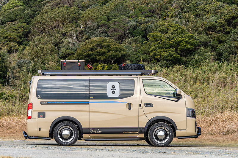 ブルーのラインをあしらい、キャラバン愛が詰まった遊び心ある一台に。