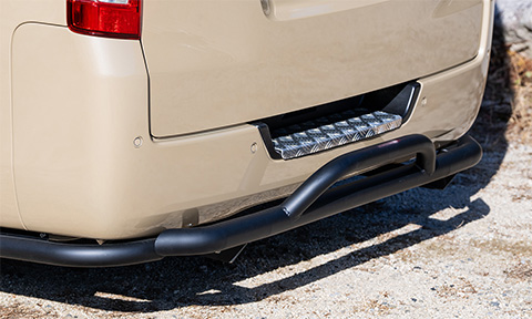 フロント同様、サイドボトム、リアバンパーボトムにもチューブ形状のガードをセット。