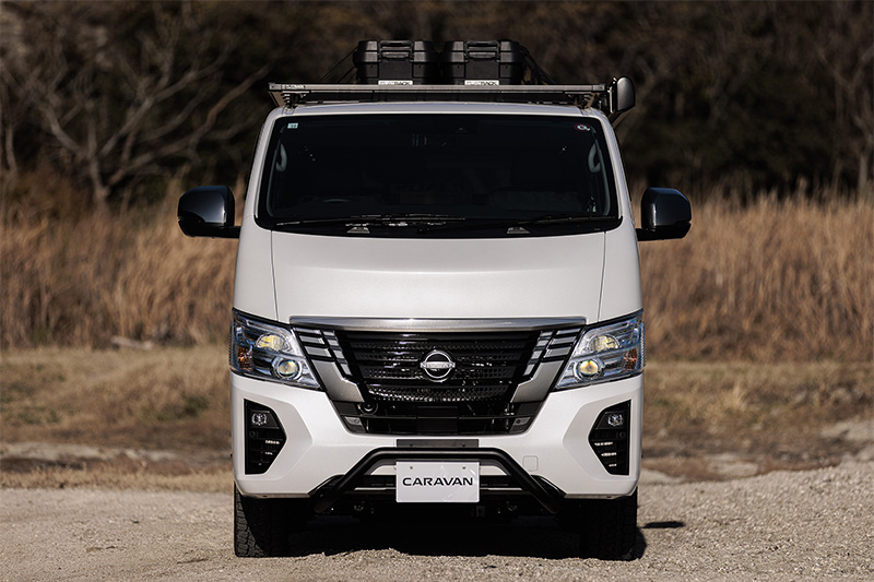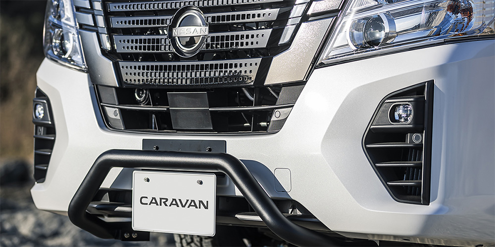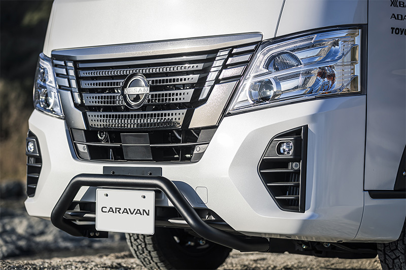 キャラバン純正グリルに合わせデザインした強靭なステンレス製のタフネス仕様。