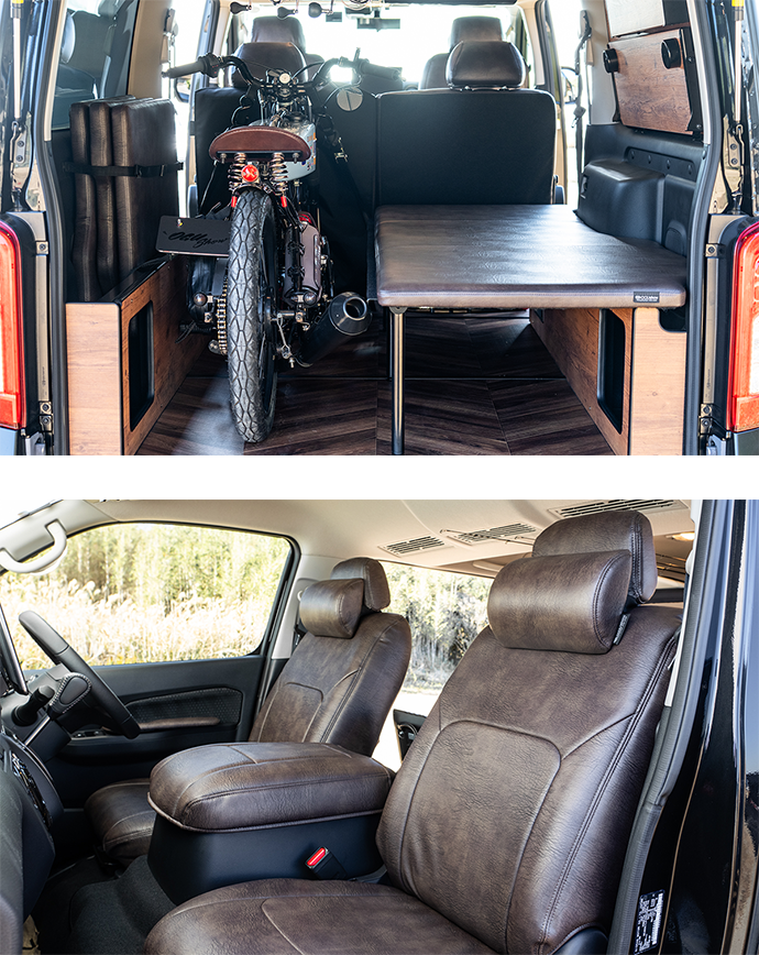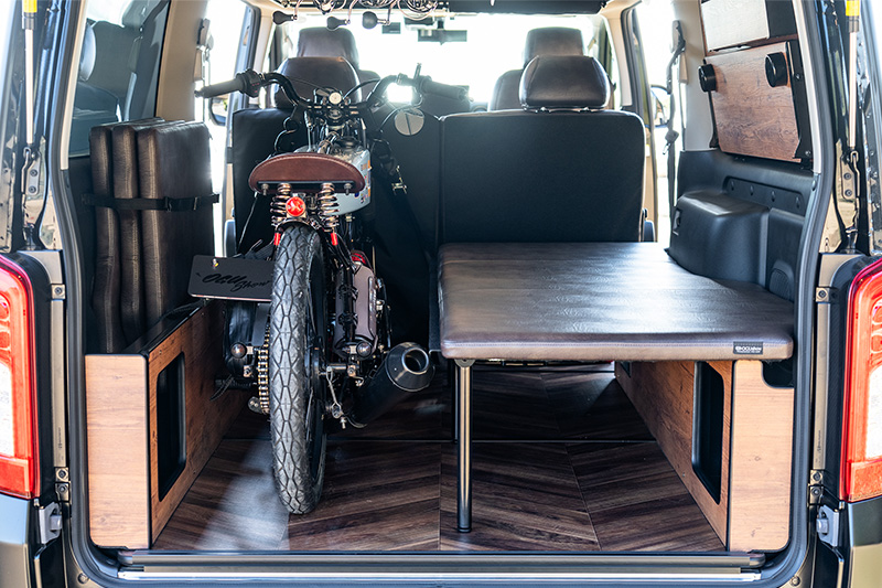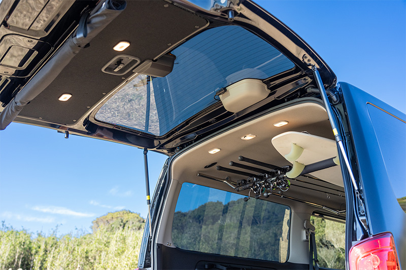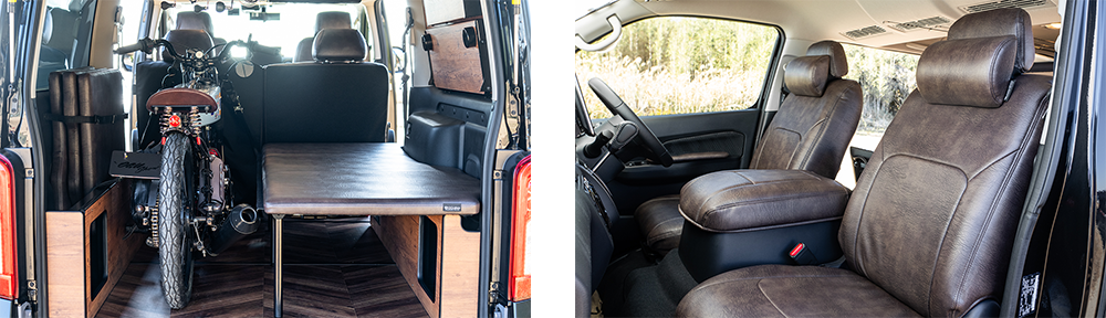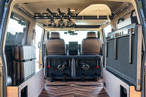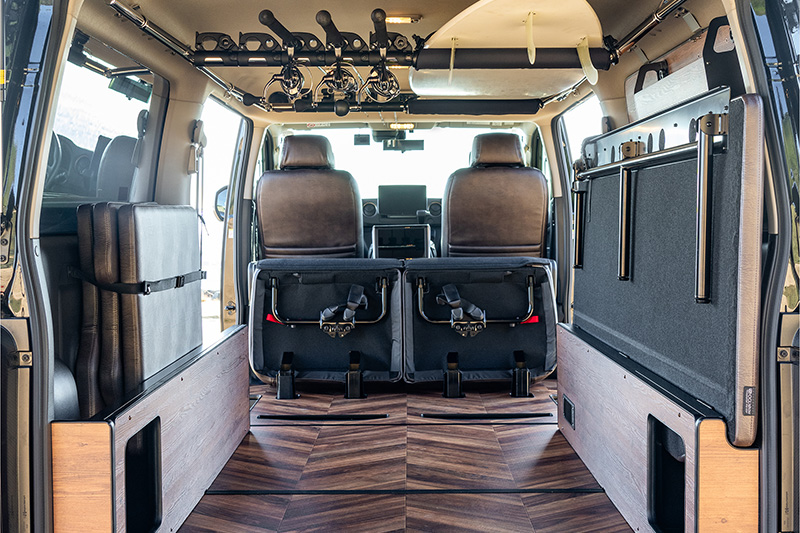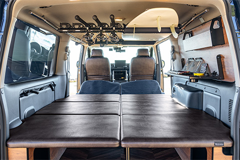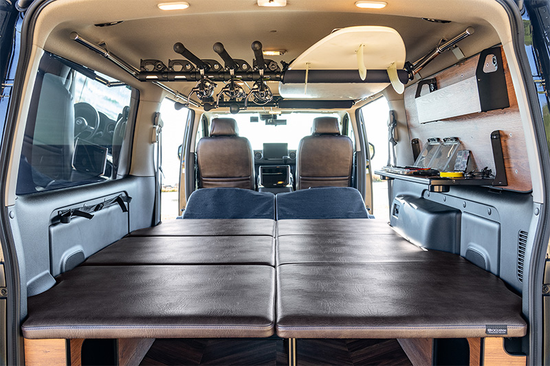 車内はデザイン性と耐久性を両立したベッドキットやフロアを