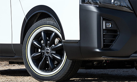- ※写真はホワイトリボンだが、人気のホワイトレタータイヤはレター部分の出っ張りが車体をハミ出すことも。