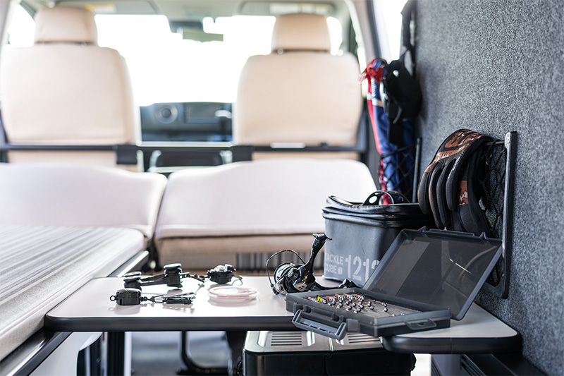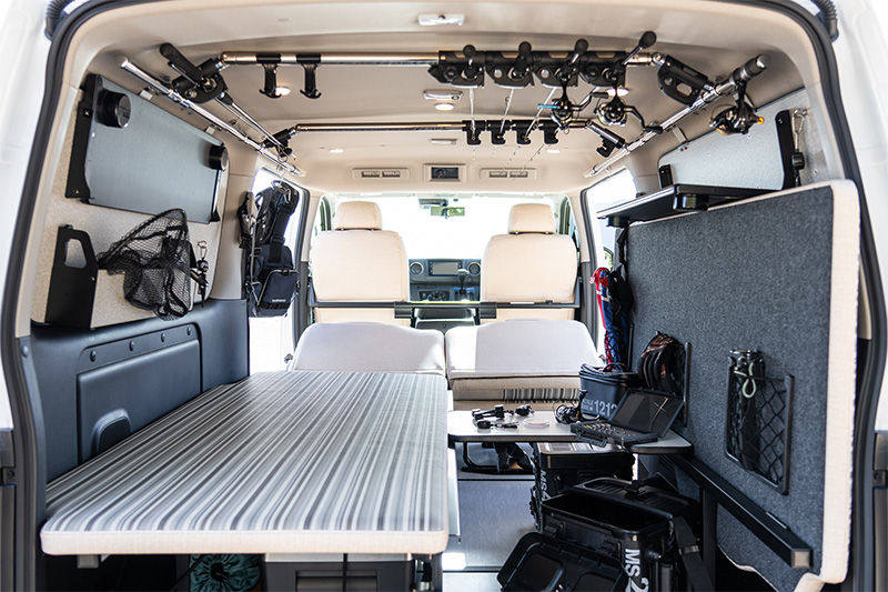 朝と夕方のゴールデンタイムを逃さない、釣り人向けの車中泊特化モデルになっている。
