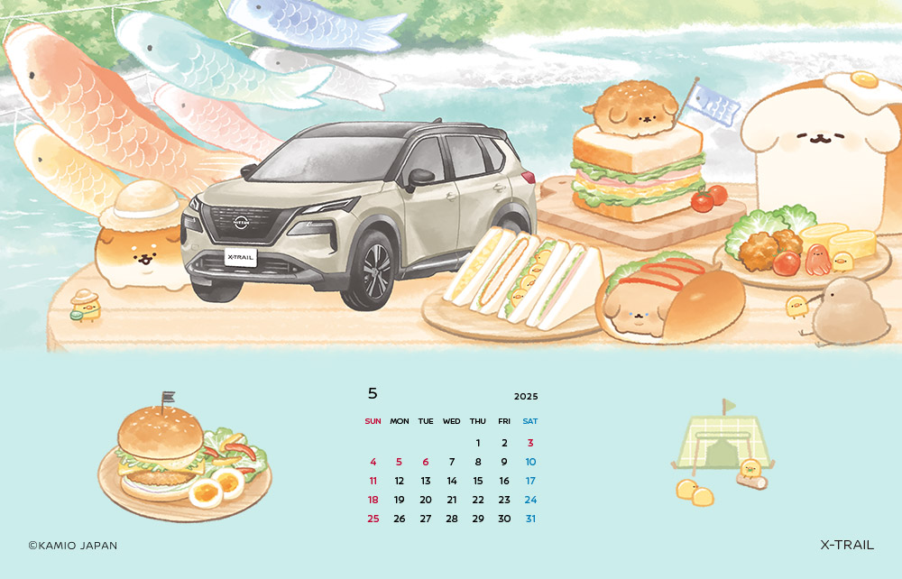 毎月「いーすとけん。」と大好きな日産のクルマたちと思い出作りにでかける楽しいカレンダーです。