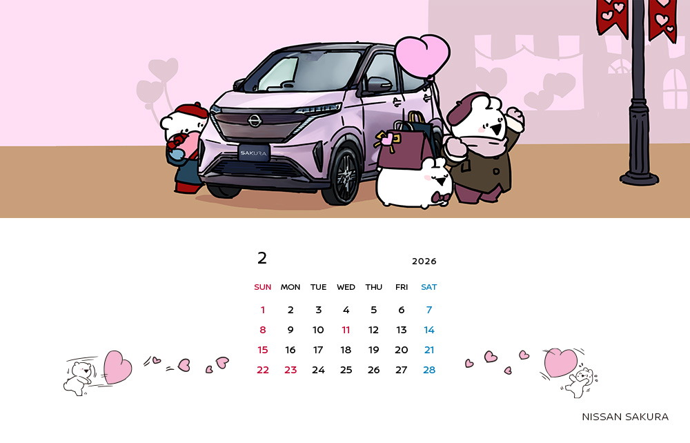 小さな電気自動車、日産サクラ。ハートがたくさんあふれる季節♡