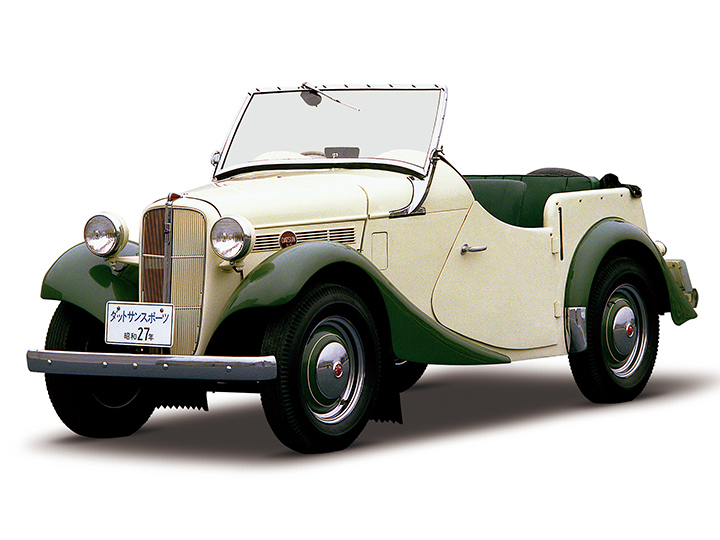 故・片山豊氏が企画したダットサンスポーツ(DC-3 型)は、ダットサンDB-2 型と同じ20 馬力のパワーユニットを搭載したシャシーに、太田祐一氏デザインによる英国風の斬新なボディを搭載し、1952(昭和27)年1 月にお披露目されたショーモデルでした。ショーでの好評を受けて、約20 台が実際に販売されたと言われます。これが、日本車で初めて「スポーツ」を名乗った「スポーツカー」の誕生でした。後の「ダットサンフェアレディ」や現在の「フェアレディZ」へ続く、日産スポーツカーの草分けとして記念碑的な存在です。