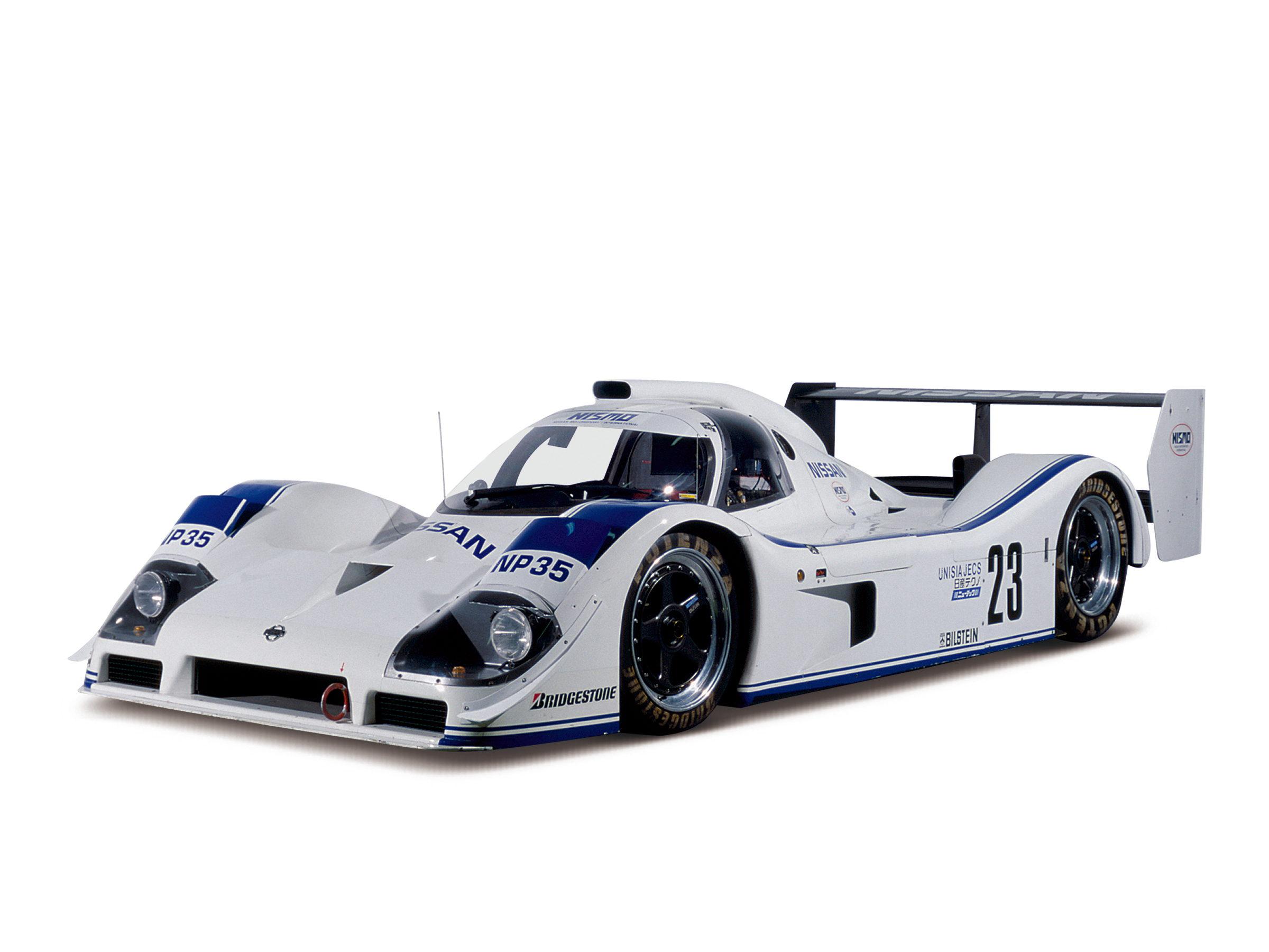 モータースポーツは、速さの追及ばかりではなく、新素材・新技術の応用、耐久力の確認など、市販車の信頼性向上のための鍛錬の場でもあります。日産が1980年代から90年代前半にかけて挑んだスポーツプロトタイプカー(グループCカー)によるレースは、好戦績を残しただけでなく、ターボ関連技術や燃費向上技術などの幅広い分野で、多くの経験とノウハウの習得にも成功しました。1993年(平成5年)シーズンからグループC車両規定が自然吸気3.5ℓエンジンへ変更されると、日産も、最高出力630馬力以上を発生する自然吸気3499cc・V型12気筒DOHCのVRT35型エンジンを搭載した「ニッサンNP35」を新たに開発します。しかし、残念なことに、多くのメーカーがグループCレースから撤退したためにレースが成り立たず、Cカーによる世界選手権レース(SWC)は1992年限りで打ち切られる結果となりました。NP35の実戦投入は、1992年(平成4年)に開催された国内レース1戦のみです(総合10位、Cクラス4位入賞)。