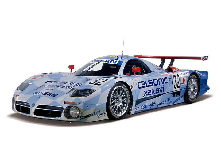 R390GT1は、日産がル・マン制覇を目標に製作した本格的なGTカーです。初挑戦となった1997年は、総合12位(星野/コマス/影山組)でしたが、1998年は、この32号車(星野/鈴木・亜/影山組)は総合3位、30号車5位、31号車6位、33号車が10位と、全車が10位以内で完走する結果を残しました。このクルマは、3位入賞車(#32)仕様です。