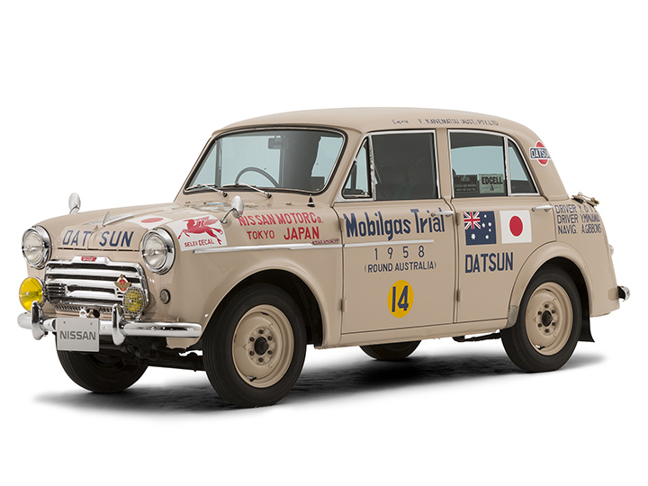 1958年(昭和33年)に行われたモービルガス・トライアル(通称:豪州ラリー)に、富士号とともに出場した、もう1台の210型が桜号です。こちらも(大家義胤選手/ 三縄米吉選手/A. ギボンス選手組)国際ラリーに初挑戦ながらAクラス4位に入賞しました。富士号とともに、折りしも北米への輸出開始を控えていたダットサンブランドの名を世界へ発信するきっかけをつくりました。ちなみに、2台が出走した豪州ラリーは、広大なオーストラリア大陸を右まわりに一周するもので、設定されたコース長1万6000km は、当時の世界最長でした。しかし、あまりにも過酷な状況での耐久競技であることから、この年が最後の開催となりました。