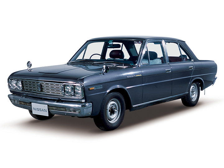 1965(昭和40)年発売の2代目セドリック・130型は、その後の日産の中核を担う直列6気筒OHC・L20型エンジンを初搭載したエポックメイキングなモデルです。「フローイングライン」と謳われた初期の流麗なエクステリアは当時の市場で意外な苦戦を強いられ、ほぼ毎年秋のマイナーチェンジで微変更を重ねた後、1968(昭和43)年9月にはオリジナルの面影を残さないスクエアでフラットなスタイリングへ変更となりました。ワイド感を強調したフロントグリルとリアエンドデザインが特徴です。