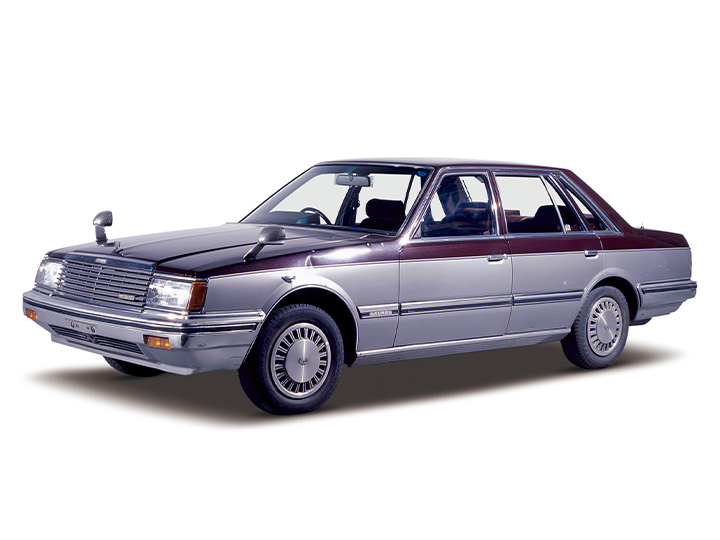 ローレルの4代目モデル、C31型は1980年(昭和55年)に発売されました。スラントノーズや低いフードなどによって、「アウトバーンの旋風」のキャッチフレーズのもと、空気抵抗係数(Cd値)0.38という優れた空力性能を実現していました。歴代ローレルで初となるターボチャージャーやECCS(電子制御エンジン集中制御システム)を採用、オートレベライザー(自動車高調整装置)や日本初のオートシートセッター(無段調整シートリフター)、マイコン制御オートエアコン、高級オーディオを装備するなど、快適性を一段と向上させていました。現在では当たり前となった足踏みPKBを、世界で初めて採用しました。エンジンは直列4気筒のZ18型、Z20型、直列6気筒のL20型、L20E型、L20ET型、L28E型、ディーゼルのLD20型、LD28型の計8機種を揃え、基本車種はセダン14車種、ハードトップ9車種と充実していました。このメダリストは、ガソリン車の2000cc、2800ccの両モデルに設定された最上位グレードで、オートレベライザー、マイコン制御オートエアコン、高級オーディオ、ASCD(オートスピードコントロール)などが標準装備されていました。
