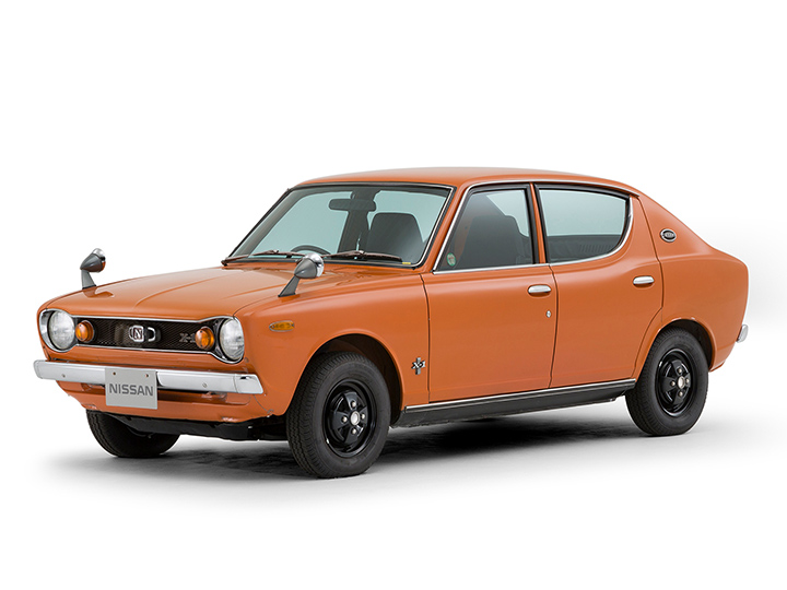 初代チェリーは、1970年(昭和45年)に日産初のFF(フロントエンジン・フロントドライブ)モデルとしてデビュー。車名の「チェリー」は、日本らしさを訴求するため「桜」から命名されました。当時の小型車は、世界的にFR(フロントエンジン・リヤドライブ)からFF への移行が進みましたが、小さなボディサイズでも広い室内を確保できるのがその最大の理由した。エクステリアでは、個性的なアイラインウインドウ(ウエストラインからC ピラーへのライン)が特徴でした。スタンダード・セミデラックス・デラックス・GL・X-1の5グレードがあり、登場時の2ドア・4ドアセダンに加えて、1971年9月にはクーペが加わりました。このクルマは、SU ツインキャブ付きのA12型・80馬力エンジンで、670kg の軽量ボディを強力に加速させる、ホットモデルのX-1です。