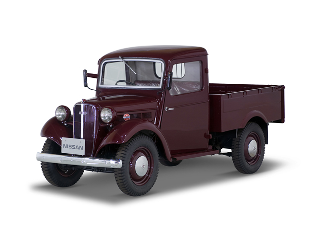 ピックアップトラックのダットサントラックは、ダットサン車の始まりにあたる1932年(昭和7年)のダットサン10型のころよりラインアップされていました。カタログに登場したのは14型からで、15型からはトラックを表すTを加えて15T型と表示されるようになりました。戦前の設計に準じた戦後型は、1946年(昭和21年)デビューの1121型から始まり、小変更を繰り返しながら1954年(昭和29年)いっぱいまで生産が続き、小口輸送の側面から日本の戦後復興を支えました。このクルマはその最終型にあたる1953年(昭和28)年の6147型で、最高速度は72km/h、最大積載量は600kgでした。ダットサントラックはその後まもなく、新設計の120型トラックへ引き継がれます。