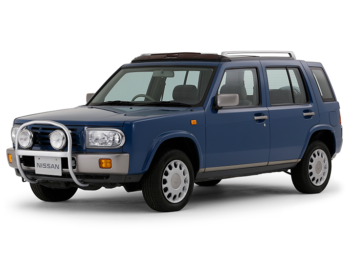 1993年(平成5年)の東京モーターショーに出展され、翌1994年(平成6年)にリリースされたコンパクトRVが「ラシーン」です。ボクシーなスタイルのラシーンは、本格的なオフロード走行を目的とした4輪駆動モデルではありませんが、手軽でタフなシティランナバウトとして、2000年に生産が終了した後でも高い人気があります。エンジンは1500cc直4のGA15DE型を搭載していましたが、1997年(平成9年)のマイナーチェンジで、1800ccのSR18DE型に変更されました。また1998年(平成10年)にはスポーティ・グレードのラシーンフォルザが追加され、最高出力145馬力の2000ccエンジン、SR20DE型が搭載されました。一風変わったネーミングは「羅針盤」に由来する造語です。