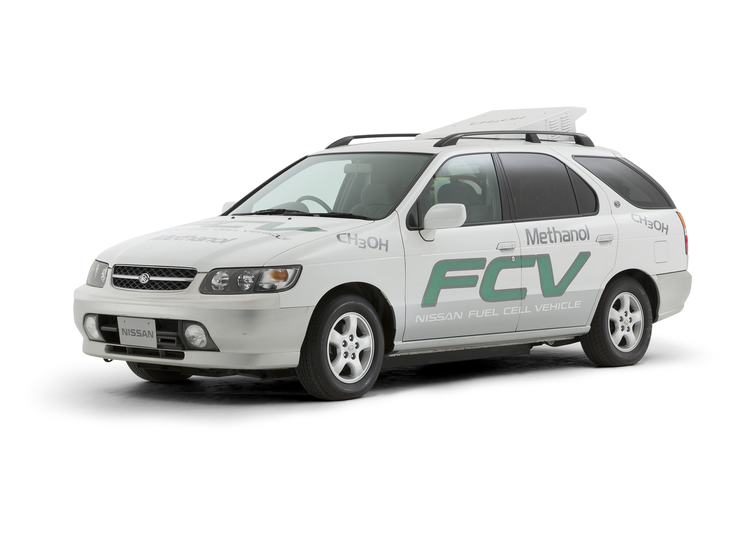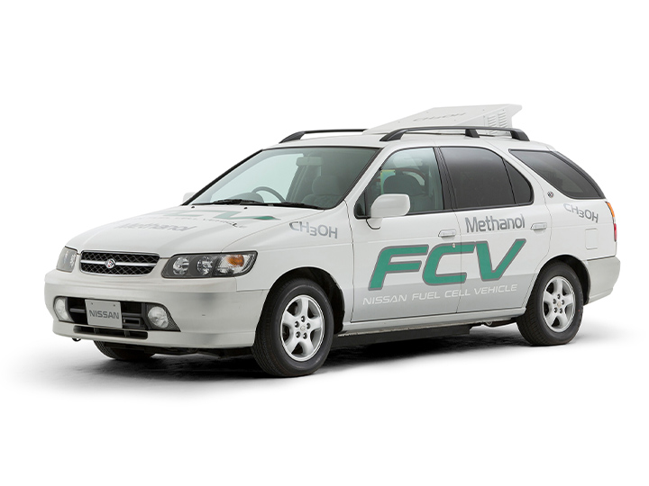 日産として初めて、走行デモ車両としては日本で初めてのメタノール改質式FCV(燃料電池自動車)の実験車です。従来のエンジン車とは構造が大きく異なるFC(燃料電池)システムの小型化の検証を目的に製作されました。FCシステム搭載のために荷室部を補強しつつ隔壁で分離しているので、乗車定員は2名です。純メタノール+希釈メタノールが燃料でした。