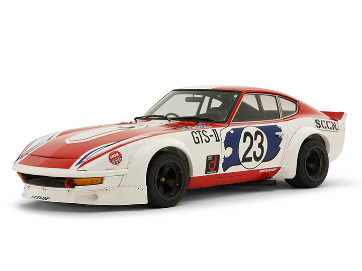 グローバルな大ヒットスポーツカーとなった初代フェアレディZ(S30型)は、国内の2ℓエンジンに対して、輸出向けは2.4ℓエンジンで発売されました。この輸出仕様が、発売2年後の1971年になって日本市場にも新規投入された際に追加になったのが、独特のノーズピース「エアロダイナ・ノーズ」をもつ240ZGです。このクルマはその240ZGのレース仕様テストカーで、排気量2,870ccクロスフローのLY28型エンジンを搭載しています。