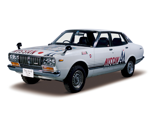5代目ブルーバードとなる810型系は、1976年(昭和51年)7月にデビュー。オイルショック後という時代を背景に投入されるニューモデルということで、「安全」「省エネ」「自然との調和」を追求しました。4ドアセダンと2ドアハードトップの2タイプを設定。当初のエンジンラインナップは、直列4気筒OHCの1600ccと1800cc、直列6気筒OHC・2000ccの3タイプでした。また、俳優で歌手の加山雄三さんをイメージキャラクターに起用し、新しいブルーバード像をアピールしました。この4ドアセダン1800SSSは、翌1977年(昭和52年)に、朝日新聞社の海外取材車として、アジアハイウェー1号線(A1ルート)を走破したもので、ワークスラリー車と同様、追浜の特殊車両実験課で改修され、サスペンションの強化やラリー用タイヤが装着されました。一緒に旅をしたセドリックと同様に、トルコのイスタンブールとベトナムのサイゴンを結ぶ、2万3000kmの取材をサポートしました。