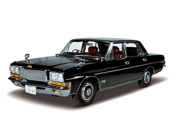 プレジデントは、日産がもつ最高の技術と品質を誇る最高級セダンとして、前身に当たる50型セドリックスペシャルの発展形として1965(昭和40)年10月に初代モデル(150型)が誕生。1973(昭和48)年に250型へチェンジしました。このクルマは、1977年(昭和52年)に53年排ガス規制への適合化を図り、型式名を252型とした車両の1980年(昭和55年)製です。最上級グレードとして設定された「ソブリン」は、その大きく威厳のあるスタイルに、V型8気筒OHV・4400ccのY44型エンジン(最高出力200馬力)を搭載。公用車やハイヤーなどとして、多くのVIPの方々を広々とした後席へお迎えし、快適な移動を提供しました。