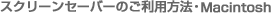インストールしたスクリーンセーバーを確認、あるいは変更する際には「アップルメニュー」→「コントロールパネル」→(スクリーンセーバー名)を開き、「スクリーンセーバーの設定」を選択します。 |