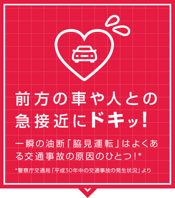 ※「検知する対象物」、「作動車速」、「衝突回避車速」は車種により異なります。詳しくはカーライフアドバイザーまでお問い合わせください。