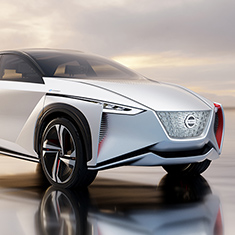 世界初公開するコンセプトカー「ニッサン IMx」は、 近い将来の「ニッサン インテリジェント モビリティ」を見据え、 「クルマとドライバーがより繋がり、もっとクルマで移動したくなる」 そんなクルマを具現化したモデルです。