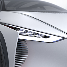 エクステリアでは、静かながらもパワフルでダイナミックなEVを「和」で表現。 インテリアにも日本の伝統的な感性や美意識を取り入れ、 完全自動運転時代の洗練された室内空間を形にしました。