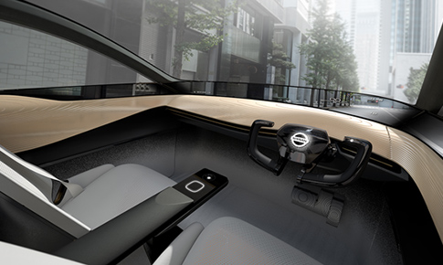 「シームレス オートノマス モビリティ(SAM)」は、 無人走行中のクルマが予期せぬ状況に直面した際、 指令センターが状況を判断し、 遠隔でクルマに指示を出す技術です。 「ニッサン IMx」はこのSAM技術を活用して、 全く新しいドライバーレスサービスを可能にします。 例えば、自動運転で空港に向かい、 到着後は無人運転で「ニッサン IMx」だけが自宅に帰る ことも可能になるのです。