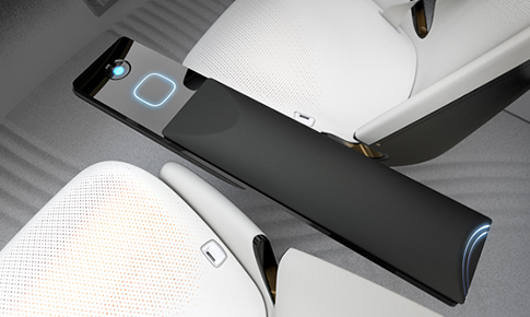 「PDモード」選択中、ダッシュボード上にあるパノラミックディスプレイと 木目調デザインのインストルメントパネルがエンターテイメントツールに。 外の風景や、音楽に合わせたビジュアル、離れた場所にいる人とコミュニケーションを取る等、 移動を楽しむことを可能にします。