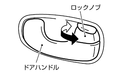 車内のロックノブを押し込むと施錠し、手前に引くと解錠します。