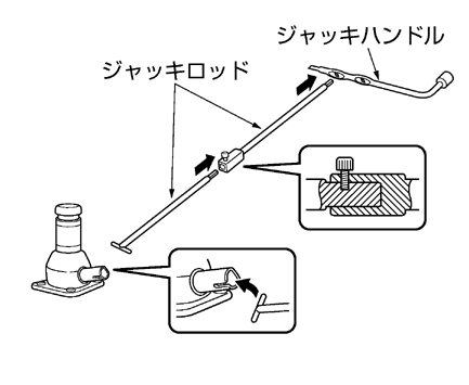 ジャッキロッドは、確実にジャッキハンドルの穴に差し込んでください。
