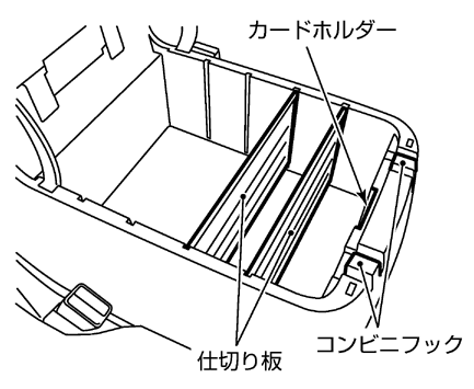 コンソールの前部はコンビニフック( コンビニフック )、後部にはカップホルダーがあります。また、内側にはカードホルダーと仕切り板があります。