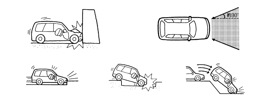 次のような、車両下部に強い衝撃を受けたときも作動することがあります。(車両の損傷は少なくても乗員への衝撃は強いとき)