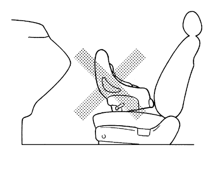 助手席には、チャイルドシートを後ろ向きに取り付けることはできません。SRSエアバッグが作動したときに強い衝撃を受け、生命にかかわる重大な傷害につながるおそれがあります。やむを得ず助手席に取り付けるときは、シートをできるだけ後ろに下げ、必ず前向きに取り付けてください。