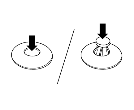 取り付けるときは、クリップの中央部を下から押し出してから取り付け、指でクリップの中央部を押し込みます。