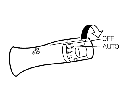 キースイッチ(電源ポジション)がONでスイッチがAUTO位置にある場合、車外が暗くなるとライトが点灯します。エンジン停止時に長時間点灯させると、バッテリーがあがりエンジンの始動ができなくなります。