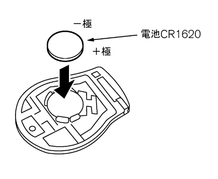 古い電池を取り外し、新しい電池の+極を下側にしてはめ込みます。