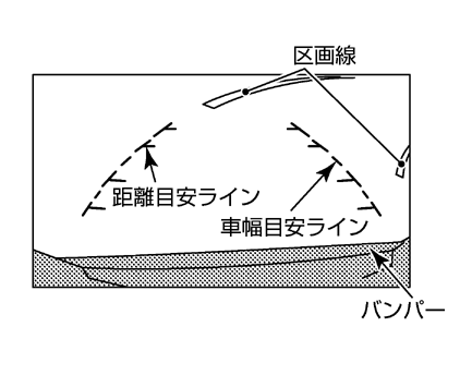 画面に表示される目安ラインを利用して駐車する例を説明します。