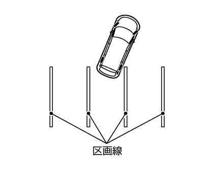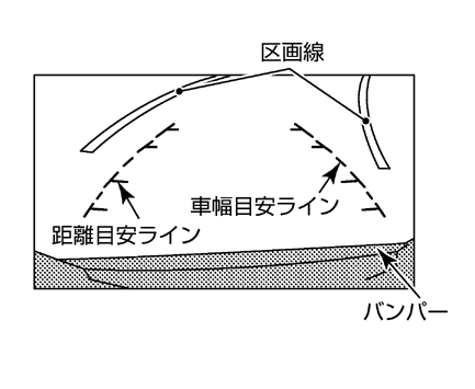 画面では車幅目安ラインと駐車スペースの区画線が平行に見えても、実際には平行ではない場合があります。