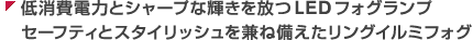 低消費電力とシャープな輝きを放つLEDフォグランプ セーフティとスタイリッシュを兼ね備えたリングイルミフォグ