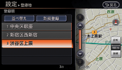 場所の登録番号を選択した番号と入れ替えることができます。登録地を選んだときのみ設定できます。 |