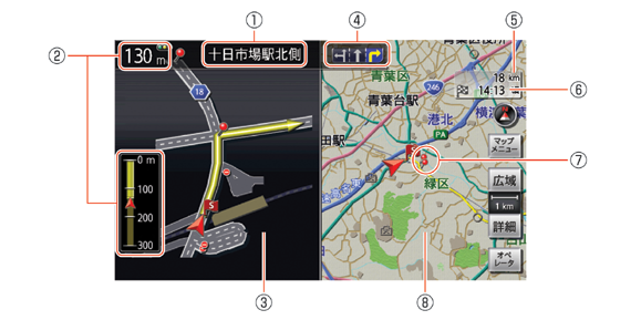 交差点などのガイド地点の名称が表示されます。