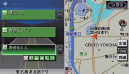 高速道路上のIC、JCT、SA、PAの名称とその情報が表示されます。