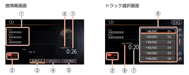 曲情報が登録されているときは、アーティスト名/アルバム名/トラック名を表示します。