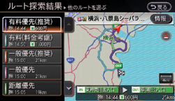 ルートが複数探索されるのは、有料区間指定を設定せず、かつ経由地が設定されていない場合または設定した経由地をすべて通過した場合のみです。