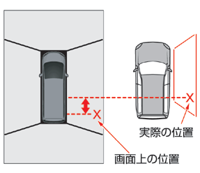 乗員人数、ガソリン残量、荷物の積載状況などによる車体の傾きなどにより、トップビューの映像がずれる場合があります。