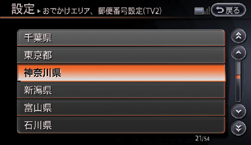 メニュー → 設定 → おでかけエリア、郵便番号設定(TV2)を選ぶ