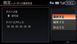 表示されるリストには、ハンズフリーフォンとして登録した携帯電話機も表示されます。必ずBluetooth®オーディオ機器として登録した機器を選んでください。