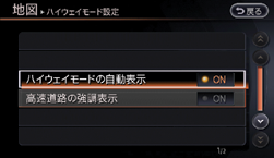 高速・有料道路を走行中に地図上の高速道路の色を強調して表示する設定ができます。